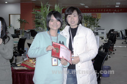 人事部沈杭娣耐心細致、自認感強,獲得公司2009年度十二月優(yōu)秀人事獎。