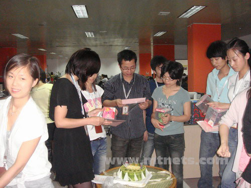 在生日歌的伴隨下,6月生日的員工走到蛋糕桌前,滿面笑容的接過公司精心準備的生日禮物,與同月出生的同事一起切開生日蛋糕,幸