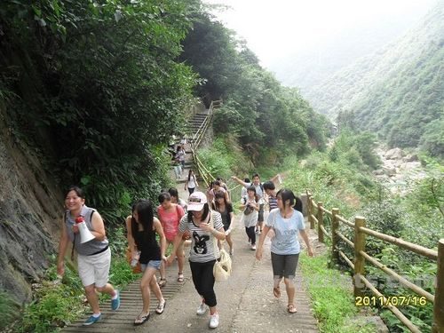 在導(dǎo)游的帶領(lǐng)下,浩浩蕩蕩進(jìn)山嘍