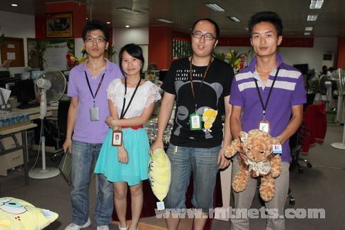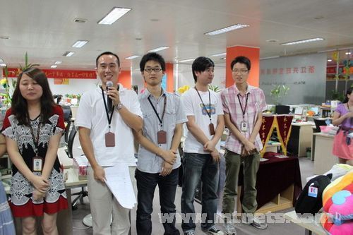 泵閥商務(wù)網(wǎng)美女優(yōu)秀銷售為紅歌大賽個(gè)人組前三名帥哥頒獎(jiǎng),彭清手中的小熊可是給老婆的
