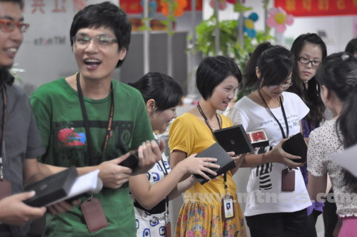 參加興旺寶明通八周年慶征文的同學們獲得了精美的皮夾,喜笑顏開。