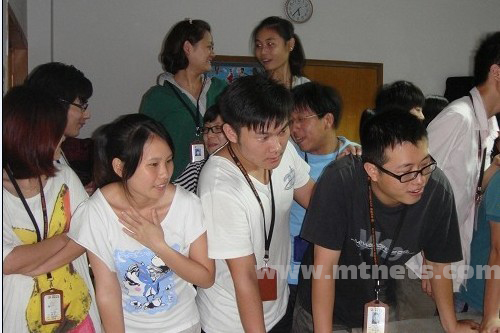 張國君套中了很多人都想要的精美紅酒,眾伙伴鼓掌中