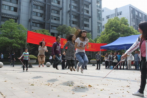 代表公司參與的有三個飛鏢隊,兩個跳繩隊,大家都是抱著重在參與的心態而報名的,平時就算想運動也因為沒有場地或者工作忙綠而不能如愿,所以一聽到這個活動,幾位想運動的同學第一時間報了名。