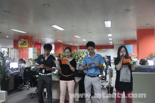 下午,“幸運九九九”的活動火熱開展。公司每位伙伴都可以得到一個五彩繽紛的氣球,而其中一些同事的氣球里面是有幸運獎品的,在主持人的號召下,大家喊出:勢如破竹不可擋,興旺寶來年更火爆,大家一起“爆”。辦公室一瞬間仿佛鞭炮齊鳴般,充滿了歡樂的氣氛。吃著寓意展翅高飛的雞翅,喝著百事可樂,抱得獎品歸。