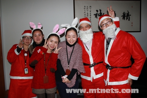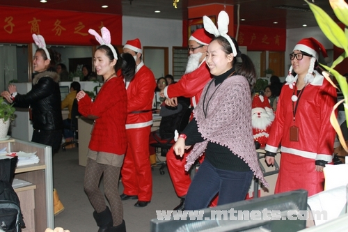第二波活動是平安夜每個明通人都受到了一個精美包裝的蘋果,公司祝大家來年平平安安,圓圓滿滿。圣誕節當天圣誕老人和兔女郎們閃亮登場,為大家表演了明通版的《江南STYLE》,并為大家派發了襪子,毛絨玩具等各種小禮物。