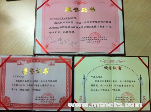 比賽間歇期,選手們談?wù)撝r候?qū)W游泳的點滴,開心的瞬間減少了比賽帶來的疲勞,6個人,每人起碼參加兩項賽事,對大家的體能是個考驗,但最后取得了不錯的成績,奪得男子400米接力的季軍,食品機械網(wǎng)的鄧海花奪得女子50季軍,優(yōu)化部的王利利奪得女子50米第六名,為公司取得了榮譽,本人獲得了獎金和證書。