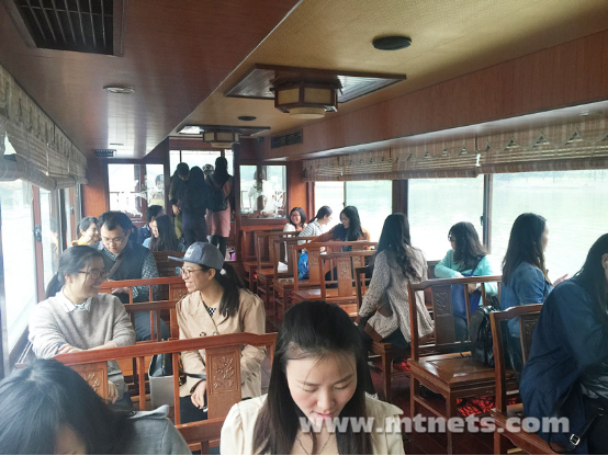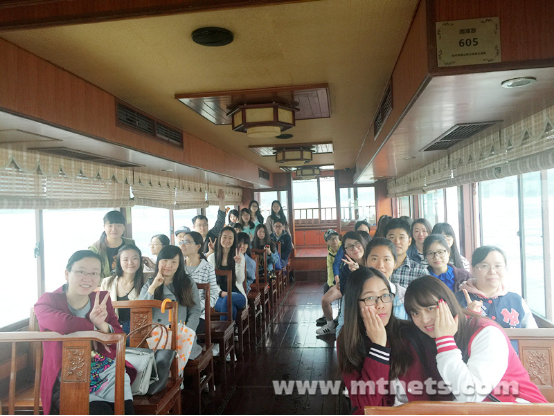 因為是雨天,編輯部岸上的步行觀光,只在下孫文化村附近。在下孫船埠,我們便坐上了一艘大游船,開始長達1小時的環(huán)湖觀景。船上,聽導游介紹著兩岸歷史文化和奇特景觀。