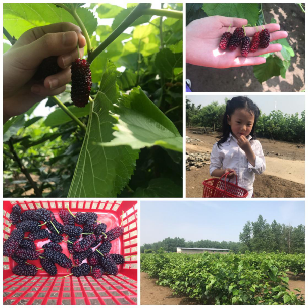 第二項(xiàng):桑葚園采摘。趕著果實(shí)最后的收獲季,過一把采摘癮,邊摘邊吃,仿佛回到了童年偷吃的時光。