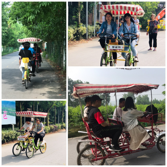 第四項(xiàng):騎自行車。與平常的自行車不同,這次我們騎的是雙人/四人自行車,需要合作進(jìn)行,一起用力。雖然看似簡單,但要想控制好方向,還需兩人一心哦!