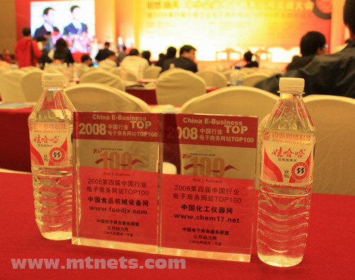 2009年4月17日-18日,“中小企業電子商務應用發展大會暨2008第四屆中國行業電子商務網站TOP100評選頒獎盛典”在“行業網站總部基地”——浙江寧波隆重舉行。17日下午,激動人心的電子商務網站TOP100評選頒獎更是掀起此次千人盛典的高潮,明通旗下兩大實力網站,中國化工儀器網www.chem17.com和中國食品機械設備網www.foodjx.com均獲得“中國行業電子商務網站TOP100”榮譽。