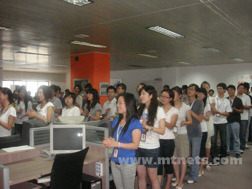 7月14日,明通全體員工迎來了6月公司頒獎大會。整個大會以快樂、分享的形式展示了神采飛揚的明通人風貌。大會上,風趣開朗的培訓主管以愛的鼓勵調動起每個團隊、每位員工高昂的斗志,熱情洋溢的口號,愛的鼓勵的掌聲響徹大樓,無不傳達著明通人的激情與夢想。