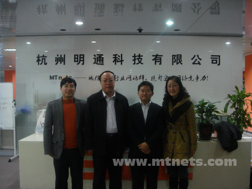 11月19日,中國電子商務(wù)服務(wù)聯(lián)盟主席、國家信息化專家咨詢委專家柴躍廷、電子商務(wù)專家趙廷超博士來杭,專程訪問了杭州明通科技有限公司。CEO陳勝明予以熱情接待,邀請(qǐng)二位專家參觀明通辦公區(qū)域,介紹了公司旗下多個(gè)B2B電子商務(wù)網(wǎng)站的運(yùn)營和發(fā)展情況。