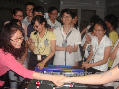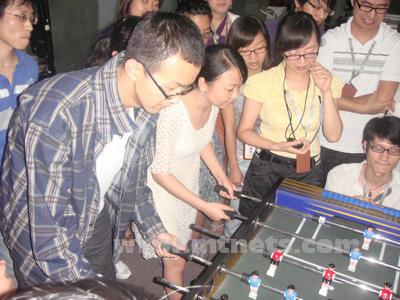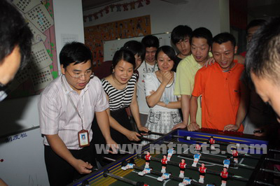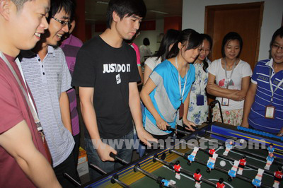 7月初,在南非世界杯如火如荼進(jìn)行著的時(shí)候,明通公司桌上足球比賽也開打了。桌上足球是個(gè)新鮮的玩意,絕大部分人都沒玩過(guò),雖然如此,但依然有64位同事激情的參與,公司總經(jīng)理、市場(chǎng)總監(jiān)等足球愛好者也紛紛參與其中。
