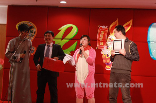 最精彩、最潮、最搞、最雷......年會中,最令人期待的莫過于明通小春晚,各個部門自導自演的精彩節目,凝聚著明通人的創意和激情,演繹著明通人的舞臺傳奇。本次年會中最出彩的要數化工儀器的《非誠勿擾3》美女們的個性宣言,反串女嘉賓的爆笑裝扮,相親情節峰回路轉,著實讓人忍俊不禁。食品機械推出的《大笑梁祝》、技術部的音樂劇《明通瑪麗》、大行政的串燒合唱等都得到了評委和現場觀眾的一致推崇。歌王爭霸賽、現場抽獎、互動游戲等也一次又一次地將新春年會推向高潮。明通新春年會在大家歡快的表演和熱烈的掌聲中落下帷幕......