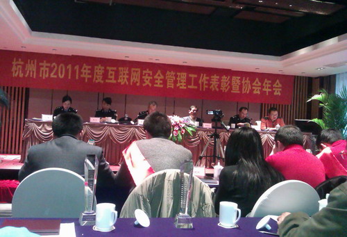 分局領(lǐng)導(dǎo)表示杭州市順利完成了“凈網(wǎng)”行動(dòng)、網(wǎng)絡(luò)電視棒清理、打擊網(wǎng)絡(luò)黑市等多項(xiàng)工作任務(wù),離不開(kāi)全市互聯(lián)網(wǎng)企業(yè)的大力支持和積極配合。2012年將對(duì)全市網(wǎng)絡(luò)企業(yè)特別是本次與會(huì)企業(yè)提出更高的網(wǎng)絡(luò)監(jiān)管和安全管理要求,更對(duì)獲得互聯(lián)網(wǎng)安全管理先進(jìn)單位的企業(yè)寄予厚望,希望先進(jìn)單位繼續(xù)做好優(yōu)秀帶頭工作,為保障杭州市互聯(lián)網(wǎng)秩序穩(wěn)定,構(gòu)建和諧網(wǎng)絡(luò)環(huán)境承擔(dān)起責(zé)任。