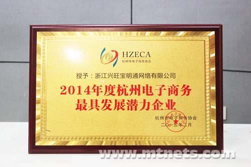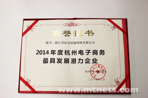 浙江興旺寶明通榮獲“2014年度杭州電子商務最具發展潛力企業”