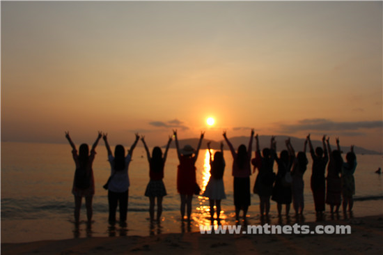 睡了3個小時以后,睡眼朦朧,披頭散發,就同他們一起去酒店餐廳吃早飯。打開門,濃郁的異國風味撲面而來,燦爛的陽光,穿著背心短褲的老外,還有純正的越南音樂,心情都變得很棒。吃完豐盛的早餐,本打算吃回去睡個回籠覺,卻被苗姐(技術部胡苗,大姐大,我們都這么叫她)拽起來去看海,她永遠都有使不完的力氣,她會在你疲倦的準備躺下的時候瘋狂敲響你的房門,喊你一起出去玩,沒有一點點防備。也因為有了她,這一次旅行多了很多的歡聲笑語。