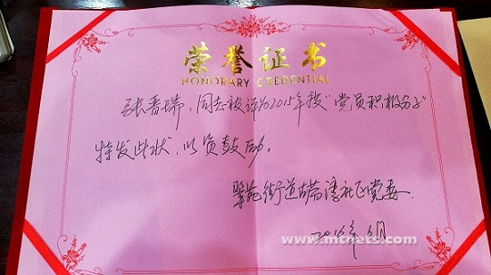 興旺寶明通黨支部獲得“先進黨支部”稱號,來自新聞部的黨員張晉瑞榮獲“黨員積極分子”。興旺寶書記練龍波和張晉瑞一起出席會議并領獎,認真學習“兩學一做”會議精神,表示要在以后的工作中都表現黨員帶頭作用,發展公司內黨員感情,讓彼此更加緊密團結。