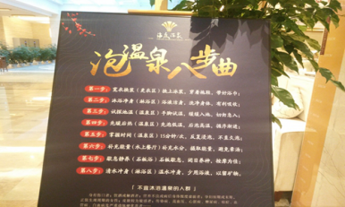 午休娛樂(lè)中,時(shí)間不知不覺(jué)就到了晚上,小伙伴們晚餐之后,就開(kāi)始了此次養(yǎng)生“重頭戲”——泡溫泉。我聽(tīng)過(guò)巴金的愛(ài)情三部曲《霧》、《雨》、《電》,激流三部曲《家》《春》《秋》,還有老舍的三部曲《茶館》、《龍須溝》、《四世同堂》。沒(méi)想到,泡溫泉還有“八步曲”,參考如圖。