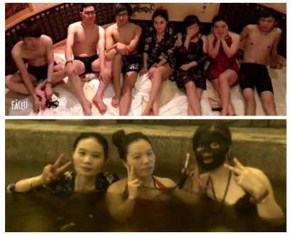 溫泉男女入口,咱就別進(jìn)去了......不過(guò),可以送上小伙伴們“誘人”的汗蒸照。其中,有一位“黑蒙面”小姐姐,只想問(wèn)一句,晚上行走時(shí),有木有嚇到人,哈哈!