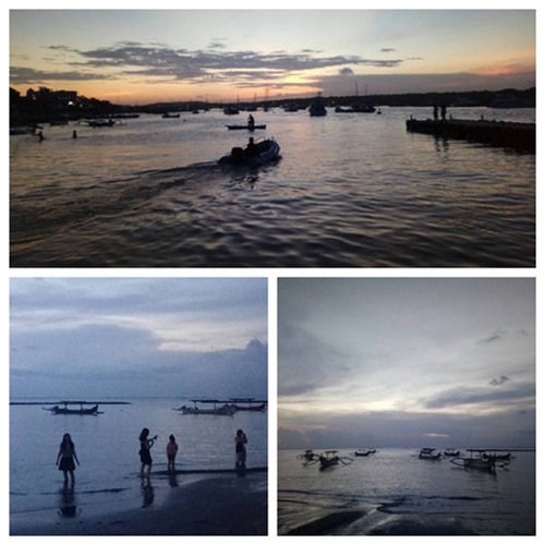 由于飛機晚點,原本第一天行程情人崖被安排至4.24日。飯后,乘坐導游車來到酒店辦理入住手續。小伙伴們各自回房休息,待到傍晚時刻,一起去酒店附近的沙灘玩耍。巴厘島傍晚沙灘美的猶如一幅畫,讓小編頃刻間看到了莫奈《日出·印象》朦朧美的“身影”。