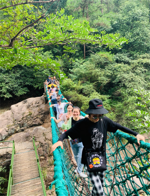 走鐵索橋,依次吳曉云,徐晴晴,老馬(電競比賽中單選手),本次旅游忙前忙后安排的邵衛(wèi)星。慫的人都走下面的路橋,比如我..