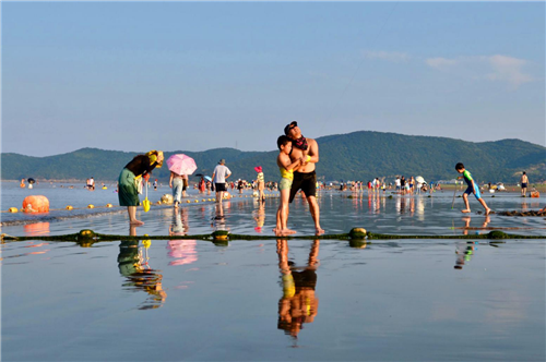 鹿欄晴沙全長3.6公里,沙灘呈南北走向,東西寬300米,是江浙沿海最長一條沙灘,沙灘坡平,縱寬大,百米外才及胸,漲潮時浪大,回聲響徹,氣勢宏偉,退潮時潮水平靜、安寧。沙色呈鐵灰色,沙質細膩偏硬,沙灘上可行駛汽車,被冠以“萬步鐵板沙”美稱,也是浙東的天空之境。