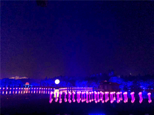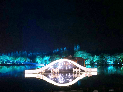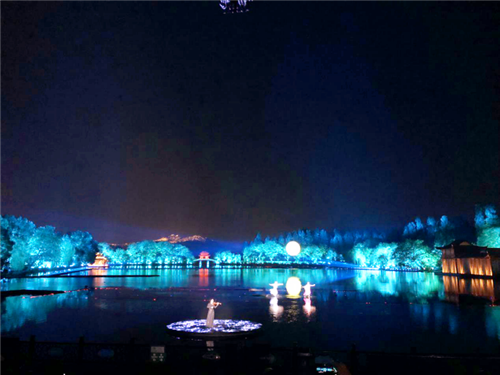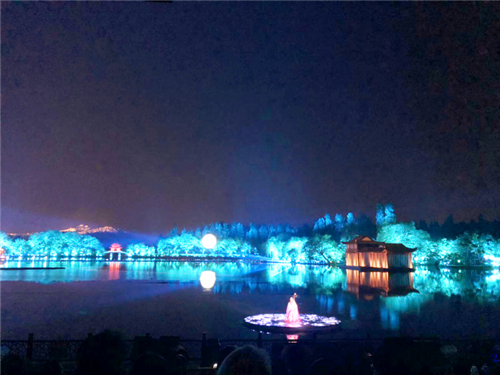 伴隨著經(jīng)典的合唱、數(shù)百位演員的行為表演、融合了燈光和交響樂的噴泉和煙火的創(chuàng)意表演,印象西湖的精彩節(jié)目落下帷幕。